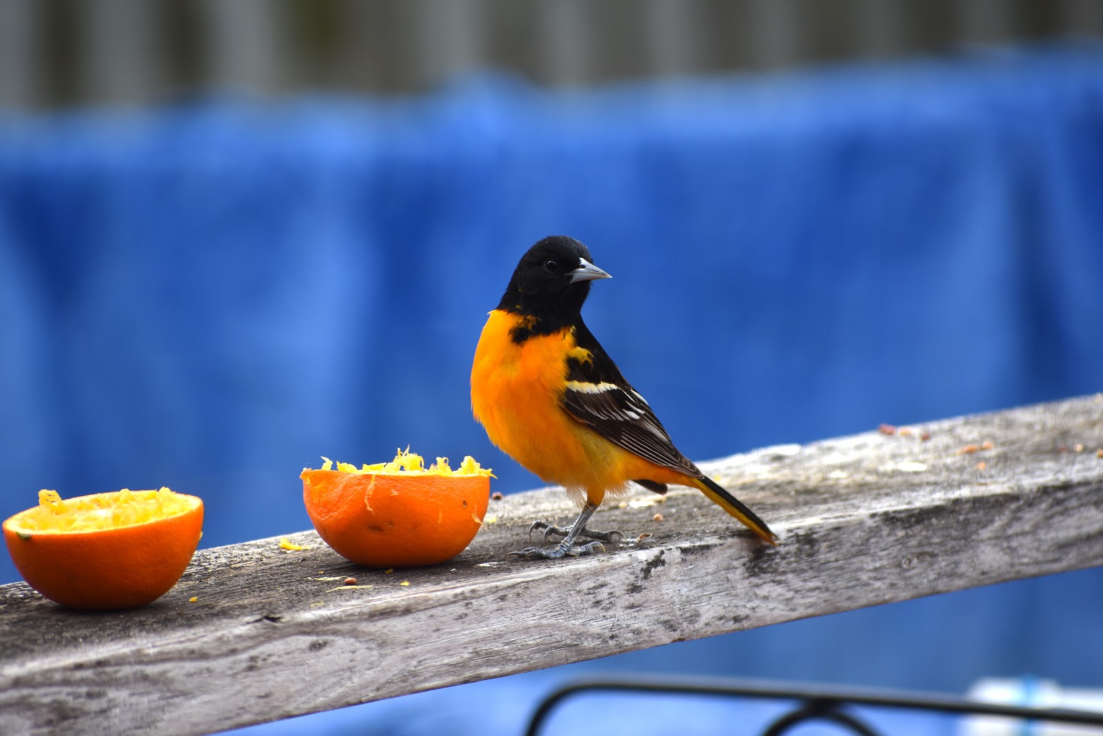 I had seen on INaturalist that there had been a few sighting of Baltimore Orioles around town. This inspired me to cut up a couple oranges and set them out to see if I can get some in my backyard. After a couple of days without anything, I was almost set to give up when a group of three finally came one morning. I quickly found out that these birds are very skittish and are not a fan of being photographed. However, I still managed to take some okayish photos of these birds anyway.